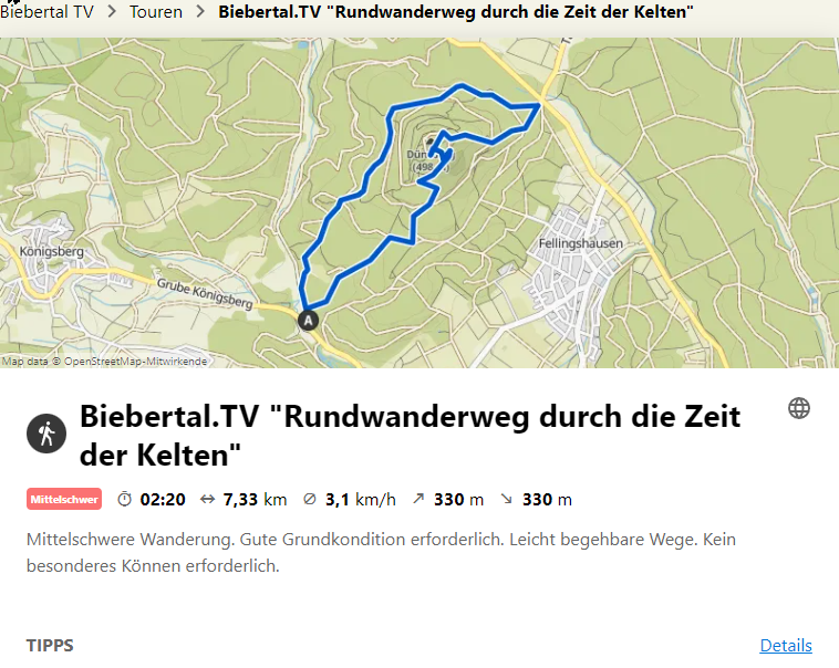 Die Keltenwanderung ist auf unseren´Seiten auf dem Wanderportal Komoot mit allen Stationen beschrieben. Dort können Sie auch einen GPX-Track herunterladen.