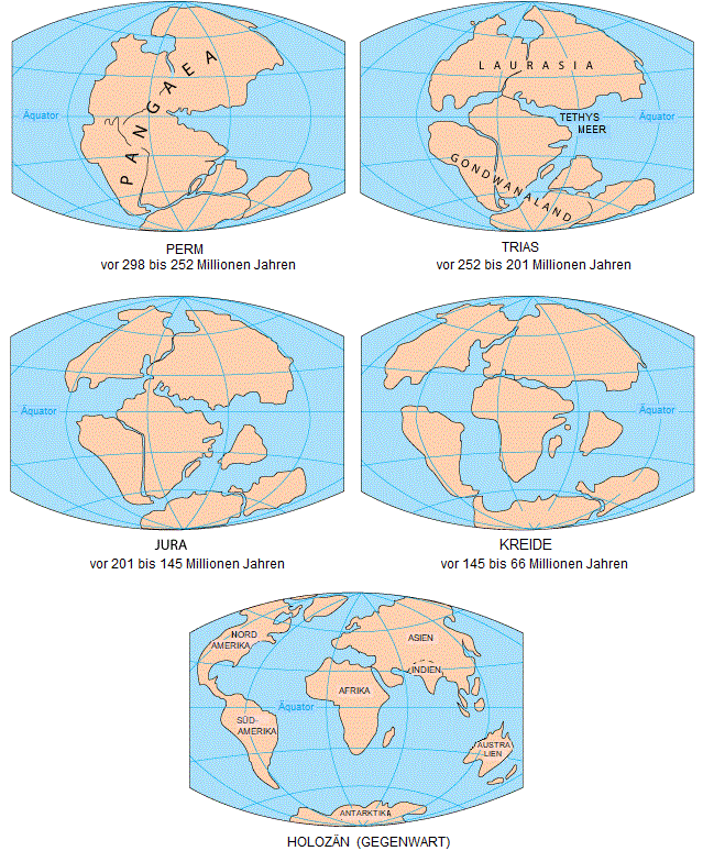 Nebenstehende Abbildung zeigt Euch die Entwicklung während der letzten ca. 300 Millionen Jahre.