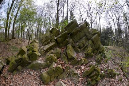 Der Königsstuhl im Wald zwischen Bieber und Waldgirmes ist ein verwitterter Vulkanschlot. Wenn Ihr vor den abgebildeten Felsen steht, dann befindet Ihr Euch mitten ein einem früheren Schlot, in welchem Magma aufgestiegen ist.
